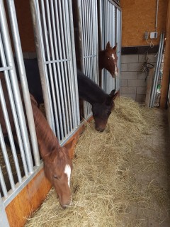 Während die wieder tragenden Zuchtststuten noch einige Wochen auf ihren Weiden genießen, kommen die Fohlen in die geräumigen Laufställe und werden erst in Zweier-, dann in Vierergruppen aneinander gewöhnt. Bestes Heu, täglicher Auslauf und ein abgestimmtes Fohlenfutter sorgen dafür, dass sie den Trennungsschmerz sehr schnell vergessen und sich in der weiteren Aufzucht bei uns wohl fühlen.