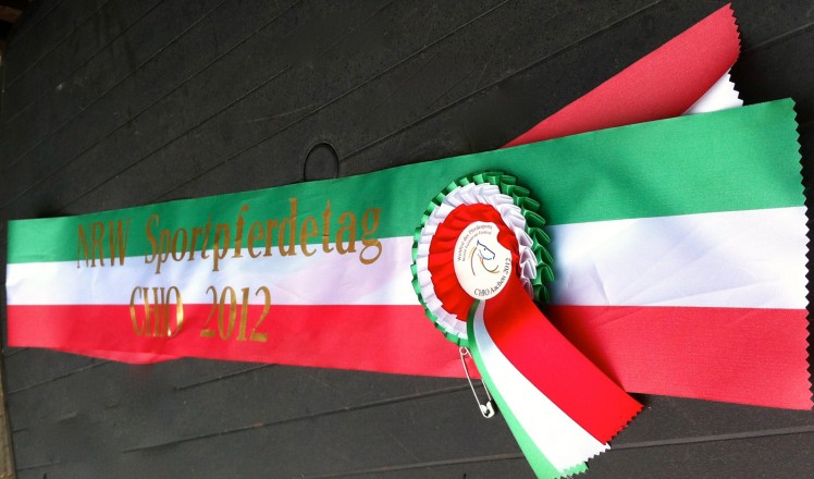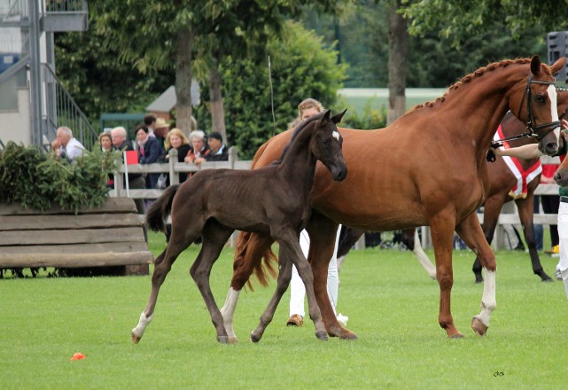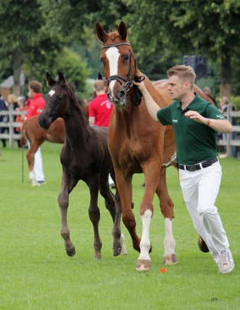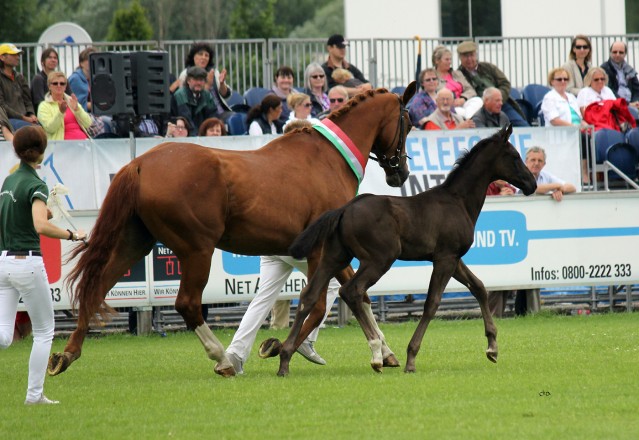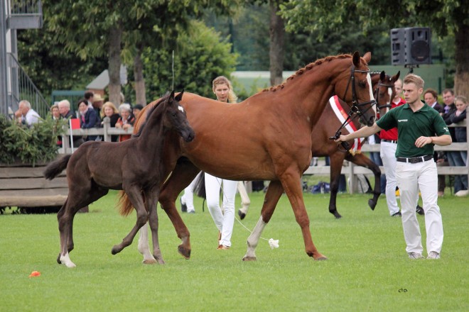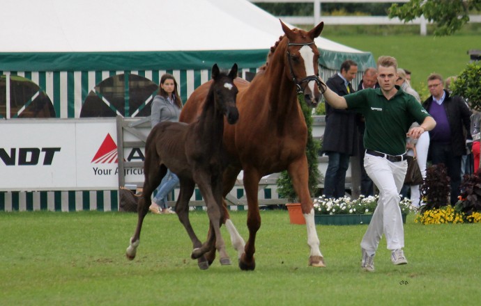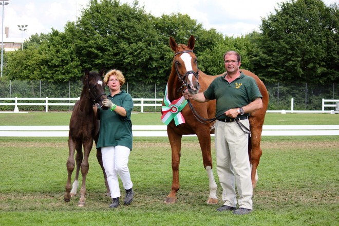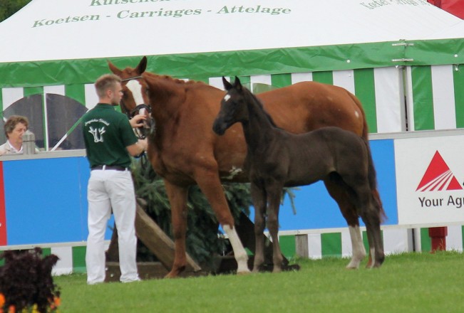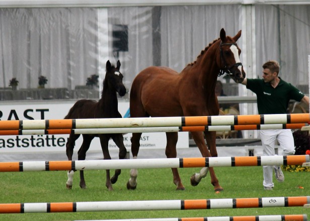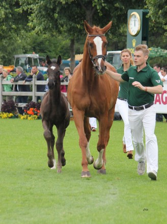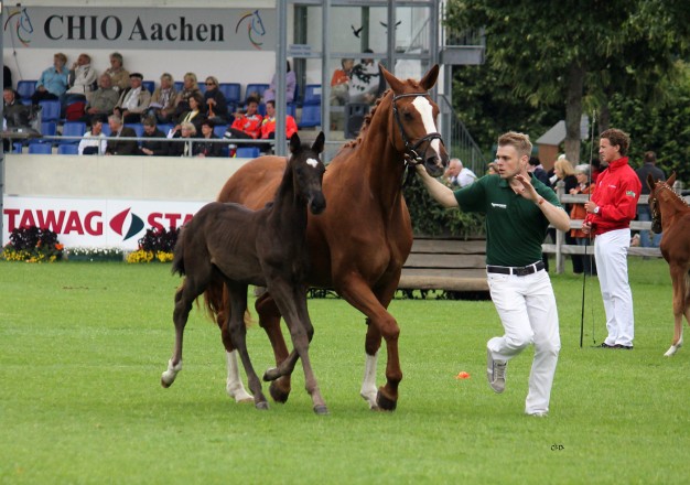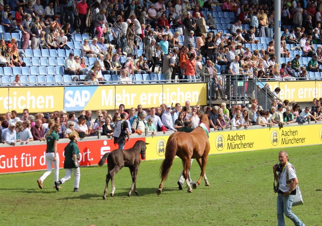 Teilnahme der Zuchtstätte Moskopp am Züchtertag am 06.07.2012 anlässlich des CHIO in Aachen. Falco M a.d. Wondergirl wurde bei der Wahl zum Fohlenchampion NRW Reservesieger und präsentierte sich mit seiner Mutter herausragend.