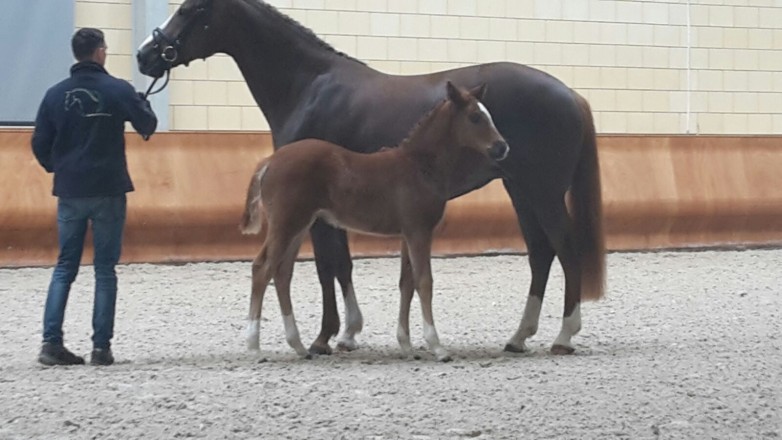 Stutfohlen Beverly M von Borsalino a.d.Verb.Pr.St. La Fitese Lutzi) auf der Hengstschau des Fohlenhofes in Haßloch.
