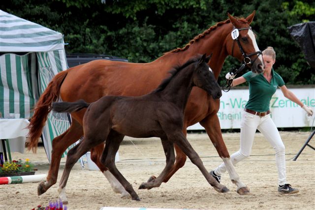 Der Reservesieger – NRW Fohlenchampion- von Aachen präsentierte sich wieder herausragend auf der Fohlenschau. Da sich Falco derzeit in einer Wachstumsphase befindet, zeigte er nicht sein volles „Gangpotential“.