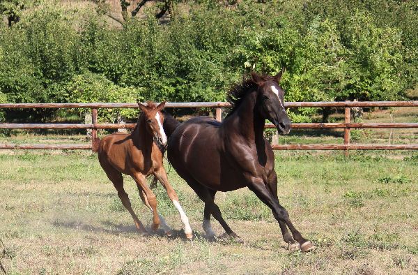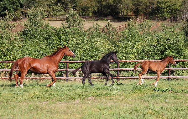 Die Stuten genießen mit ihren Fohlen die letzten Sonnentage auf der Weide. Zwischenzeitlich stellt man fest, dass Donna und Falco ihre Mütter nicht mehr so “wirklich” brauchen. Ungezwungen und lebensfroh spielen und tollen sie auf der Weide und ärgern die anderen “Tanten”.