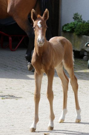 . Platz und 1 a Silber für unser Stutfohlen von Bordeaux. Taktsicher und kraftvoll trabte die Kleine abstammungsgemäß mit ihrer Leihmutter “Blümchen” durch die Reithalle von Wickrath. Ein entsprechendes Video laden wir noch hoch.