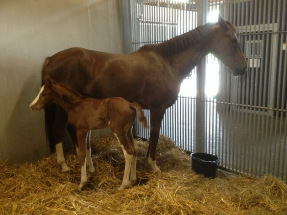 In der Nacht zu Karfreitag wurde ein gesundes, langbeiniges Stutfohlen von Belissimo geboren. Das Mädchen ist eine Fuchsstute und sehr bunt. Unser erster Eindruck: Die Anpaarung mit Belissimo war ein Treffer.