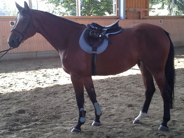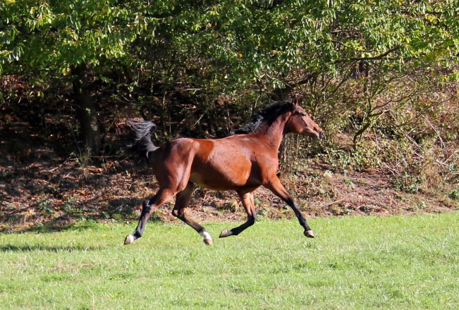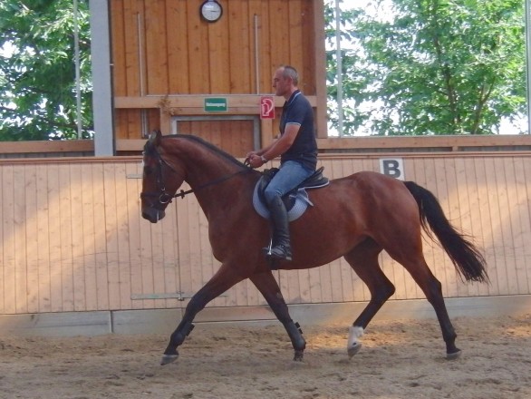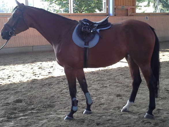 Lena, 4 jährige braune Stute von Lanciano, ist für Zucht sowie Sport gleichermaßen geeignet ist. Sie ist derzeit im Beritt und wird behutsam an ihre sportlichen Augaben herangeführt.